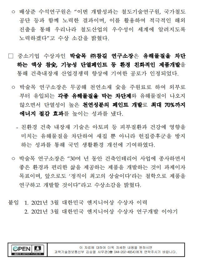 3월 대한민국 엔지니어상 (과힉기술정보통신부 보도자료) 페이지 정보 작성자 최고관리자 작성일21-03-17 10:30 조회32,975회 댓글0건 관련링크 본문 3월 대한민국 엔지니어상 (과힉기술정보통신부 보도자료) 댓글목록 등록된 댓글이 없습니다. 이전글 다음글 목록